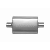 Gibson High Performance Superflow Mufflers deliver the powerful "big block" sound at the tailpipe with more usable pulling power and torque! Gibsons superior design reduces cab noise (drone) without sacrificing power or sound quality . By baffling and chambering their mufflers, (vs cheaper packed or screened mufflers - nothing to blow out) Gibson mufflers promote better volume efficiency with unrestricted flow. Even better, the added thickness of the muffler case and heavy duty tubing, along with a superior stainless steel design, all contribute to a long and productive life for your new performance muffler.