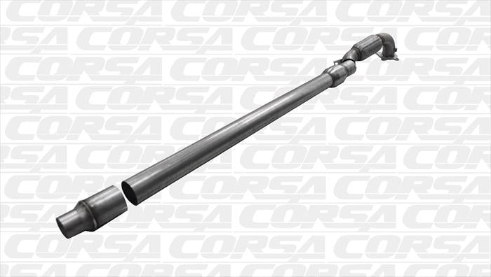 CORSA Performance Exhausts are known for their quality and technology. Corsa Performance Exhausts are more than a pipe with a muffler. Each bend is meticulously analyzed and tested for both power and sound. Corsa downpipes are no different and are built with improved sound and performance in mind. The integrated high flow cat is designed for increased power as well.