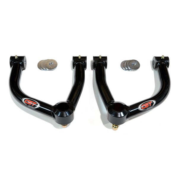 Weak OEM ball joints and upper control arms present lots of problems by limiting suspension travel on lifted trucks. The more you lift, the more likely you are to begin having issues. Uni-Ball Upper Control Arms by CST Suspension feature a uni-ball design and come fully assembled. The part number for this item is CSS-T2-5 and this PAIR of upper control arms fits 2007-2014 Toyota Tundra models.