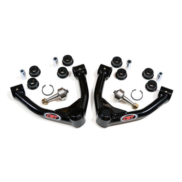 Weak OEM ball joints and upper control arms present lots of problems by limiting suspension travel on lifted trucks. The more you lift, the more likely you are to begin having issues. Uni-Ball Upper Control Arms by CST Suspension feature a uni-ball design and come fully assembled. The part number for this item is CSS-C12-13 and this PAIR of upper control arms fits 2015-2016 Chevy Colorado / GMC Canyon models.