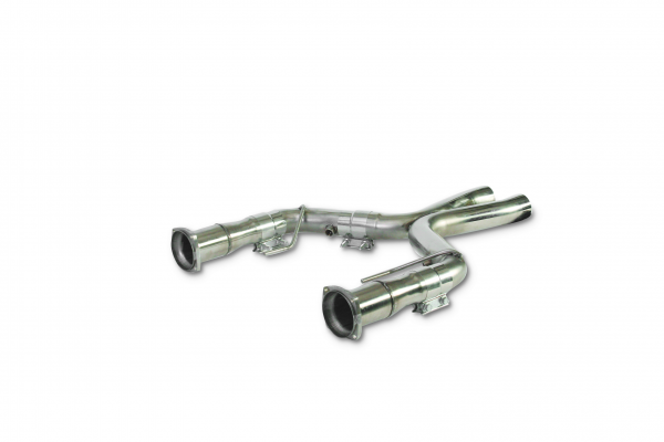 Dynatech SuperMAXX Stainless Steel Race Mid Pipes (Non-Catted) are the perfect item to combine with your Dynatech SuperMAXX Headers for a complete bolt-on installation on your vehicle. Designed for racing and maximum flow, these SuperMAX Intermediate pipes eliminate your catalytic converter(s). They outflow the OEM mid-pipes by a wide margin, resulting in improved power. Designed with high quality "ball and socket" connections, this intermediate pipe will connect directly to your Dynatech SuperMAXX Long Tube Headers and then to your factory or aftermarket cat-back exhaust. The part number for this item is 722-64330 and it fits 2007-2010 Ford Mustang Shelby GT500 (5.4 V8 Models) with Dynatech SuperMAXX Long Tube Headers. This item is not designed to bolt up to OEM Exhaust Manifolds, only Dynatech SuperMAXX Headers (Dynatech Header part 722-64310, which is sold separately).