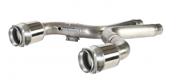 Dynatech SuperMAXX Stainless Steel Catted Mid Pipes are the perfect item to combine with your Dynatech SuperMAXX Headers for a complete bolt-on installation on your vehicle. Designed with performance in mind, these SuperMAX Intermediate pipes feature high flow metallic substrate catalytic converters. They outflow the OEM cats by a stunning 54% for greatly improved flow and more power. Designed with high quality "ball and socket" connections, this intermediate pipe will connect directly to your Dynatech SuperMAXX Long Tube Headers and then to your factory or aftermarket cat-back exhaust. The part number for this item is 722-74420 and it fits 2011-2014 Ford Mustang (Supercharged GT 5.0 and GT500 Models) with Dynatech SuperMAXX Long Tube Headers. This item is not designed to bolt up to OEM Exhaust Manifolds, only Dynatech SuperMAXX Headers (Dynatech Header part 722-74310 or 722-84310, which is sold separately).