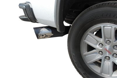 The Metal Mulisha Exhaust System line by Gibson Performance is easily the most unique performance exhaust system line we've seen to date. If the name doesn't already imply it, these systems are mean! Gibson Metal Mulisha Performance Exhaust Systems feature 4" diameter stainless steel piping that is mandrel bent for optimal flow. At the end of the system is a ceramic coated black exhaust tip with the famous skull logo featured on the side. The edge of the Metal Mulisha Exhaust tip is rolled for an improved look. The Gibson Metal Mulisha Performance Exhaust packs a mean sound. You'll gain horsepower and most users report a small increase in fuel economy / efficiency. Gibson Metal Mulisha Exhausts are Made in the USA and backed by a limited lifetime warranty. The part number for this Gibson Cat Back Exhaust System is 60-0033 and it fits 2014-2016 Chevy Silverado 1500 Truck 6.2 V8 Crew Cab (6 1/2' Bed). This is a 4" Diameter system with a 6" tip that exits on the passenger side behind the rear tire.