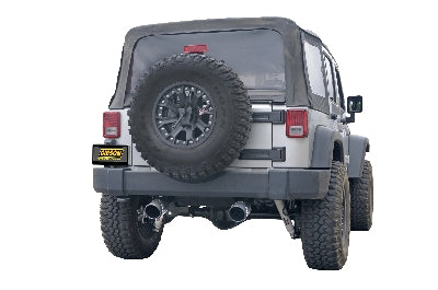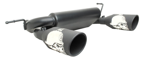 The Metal Mulisha Exhaust System line by Gibson Performance is easily the most unique performance exhaust system line we've seen to date. If the name doesn't already imply it, these systems are mean! Gibson Metal Mulisha Performance Exhaust Systems feature stainless steel piping that is mandrel bent for optimal flow. At the end of the system is a ceramic coated black exhaust tip with the famous skull logo featured on the side. The edge of the Metal Mulisha Exhaust tip is rolled for an improved look. The Gibson Metal Mulisha Performance Exhaust packs a mean sound. You'll gain horsepower and most users report a small increase in fuel economy / efficiency. Gibson Metal Mulisha Exhausts are Made in the USA and backed by a limited lifetime warranty. The part number for this item is 60-0023 and it fits 2007-2017 Jeep Wrangler 3.8 AND 3.6. This is a 2.5" Diameter system with two rear exit 5" tips.