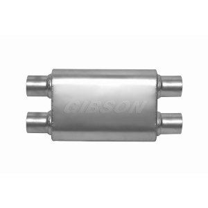 Gibson High Performance Superflow Mufflers deliver the powerful "big block" sound at the tailpipe with more usable pulling power and torque! Gibsons superior design reduces cab noise (drone) without sacrificing power or sound quality . By baffling and chambering their mufflers, (vs cheaper packed or screened mufflers - nothing to blow out) Gibson mufflers promote better volume efficiency with unrestricted flow. Even better, the added thickness of the muffler case and heavy duty tubing, along with a superior stainless steel design, all contribute to a long and productive life for your new performance muffler.
