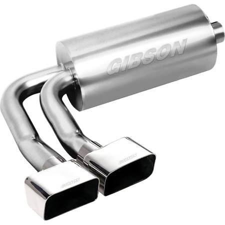 Dual performance exhaust pipes exit the Gibson high flowing performance muffler and are topped off by twin sport truck style rectangular exhaust tips that exit in front of the rear wheel of your