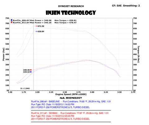 Injen Evolution Air Intake Systems for Diesel Trucks: Injen Evolution Air Intake Systems for Diesel Trucks are Injen's newest product, featuring supernano web DRY filters and massive horsepower and torque gains. The enclosed airbox design offers a clean look and superior heat protection compared to traditional open element systems. Injen Evolution Air Intake System will replace your factory airbox and intake tube. Your existing sensors and hoses will connect to it to ensure a proper fit with no check engine lights. Injen also has taken the guess work out of when it is time to clean your filter with the incorporation of a filter minder gauge. Thanks to the supernano web dry design of the filter, there is no oil to mess with which can cause issues with sensors. With all of these features and the horsepower and torque gains, the choice is simple. The part number for this item is EVO9003 and it fits 2011-2016 Ford F-250 F-350 SuperDuty (6.7 PowerStroke Diesel Models). Injen achieved gains of 19hp and 52lbs of torque during their testing!