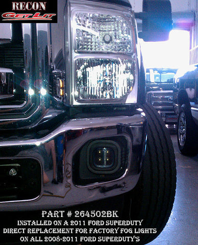 When we are out driving at night or we are in the fog, we want to be able to see. Our lives may depend on it. With this in mind, you have to wonder why so many fog lights leave much to be desired... Enter RECON with a solution: RECON LED Fog Lights and Driving Lights. Knowing drivers deserve the best, RECON has developed high powered fog lights and driving lights to satisfy our needs not only for safety, but sleek looks and better durability. RECON LED Fog Lights and Driving Lights feature multiple 12 watt 6500K LEDs in each light, resulting in clean, bright, and dependable white light. The part number for this item is 264502BK and it fits 2008-2013 Ford F250HD/F350/F450/F550 Superduty models.