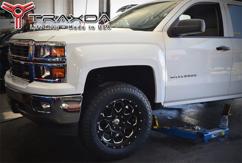 If you're looking for a complete mild lift to give your truck a more aggressive look or fit larger wheels and tires, you've come to the right place! Traxda complete lift kits are an easy solution that are reliable, safe to use, and best of all, maintain factory ride quality. Proudly made in the USA, this Traxda complete lift kits achieve lift for the front of your truck with a new set of torsion keys. Traxda torsion keys are built to last and guaranteed to never break or fail for as long as you own your truck. The rear of the truck is lifted with a new set of U-Bolts and lift blocks. Your Traxda complete lift kit will come with everything you need for a quick and easy installation. Shock brackets are included so you can continue to use your factory shocks without any issues. All necessary hardware, as well as alignment specs, detailed instructions that include photos, and a Lifetime Warranty are included. The part number for this Traxda complete lift kit is 406035 and it fits 2007-2018 Chevy Silverado 1500, GMC Sierra 1500 (4WD 6 Lug) models. It lifts the front of your truck 2.5" and the rear of your truck 1", allowing you to safey run up to a 33" wheel.