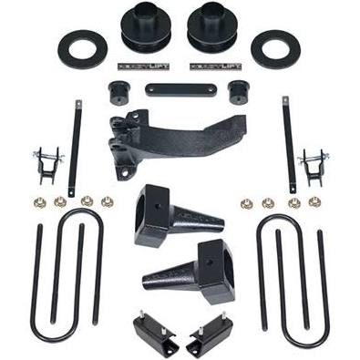 If you're looking for a lift kit for your Ford SuperDuty truck, you've come to the right place! Ready Lift lift kits are an easy solution that are reliable, safe to use, and best of all, maintain factory ride quality, guaranteed. This ReadyLift front kit achieves lift for your truck with the following: 2.5" Coil Extenders, sound isolators, shock extensions, sway bar frame mount spacers and bump stop extensions. A Track Bar Relocation Bracket is also included to maintain factory ride quality. Cast 4" Lift Blocks and longer U-Bolts will replace the 2" oem rear blocks and u-bolts, providing 2" of rear lift. Your ReadyLift lift kit will come with everything you need for a quick and easy installation. All necessary hardware, as well as detailed instructions that include photos, and a Lifetime Warranty are included. The part number for this Ready Lift lift kit is 69-2524 and it fits 2011-2016 Ford F250 Super Duty 4WD (Models w/ 1pc Driveshaft) models. It lifts the front of your truck 2.5" in the front and 2" in the rear on F250s, allowing you to safely run up to a 35" wheel.