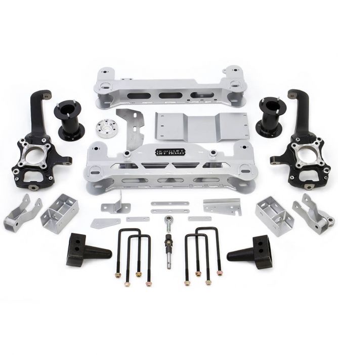 Installing this Kit will REQUIRE longer shocks AND some welding. See below. The Complete kit 44-2475 7.0" Lift Kit features precision designed laser cut and CNC formed subframe assemblies that directly bolt in. Welding is required for one section which attaches to the frame. Includes heavy duty cast nodular iron steering knuckles, patent pending rack & pinion steering drop system and an integrated differential drop bracket system to insure correct CV axle angles and maxiumum performance in 4WD mode. Fabricated steel strut extensions provide the Maximum 7.0" of front lift while 5.0 tall OEM-style rear blocks provide a quality rear lift that doesn't sacrafice the ride. Total rear lift equals 4.0" of lift when installed.This kit even includes a Patent Pending steering extension to keep your steering performance like factory. Bonus - No need to cut your steering rods like on other kits which requires the tie rods to be shortened. This results in reduced steering radius. Our steering rack drop down system allows you to retain your stock tie rods without modifying them. Bonus - The ReadyLIFT MLS lift kits are the only lift kits that will allow you to use your factory spare wheel and tire in case of a flat. The MLS sub frame and other components are powder coated with a unique and improved Plascoat finish. The Plascoating on the MLS components is a performance polymer alloy coating specifically designed to provid a long lasting, tough coating for exterior applications. The Plascoat finish is especially resistant to stress cracking with improved abrasion and impact resistance as well as a great way to protect against adverse weather conditions, detergents, salt spray and other typical airborne pollutants. This kit does requires longer rear shocks which are not included. Must be purchased separately. The part number for this Ready Lift lift kit is 44-2475 and it fits 2014 Ford F150 4WD models. It lifts the front of your truck 7" and the rear 4" allowing you to safely run up to 37" wheels.