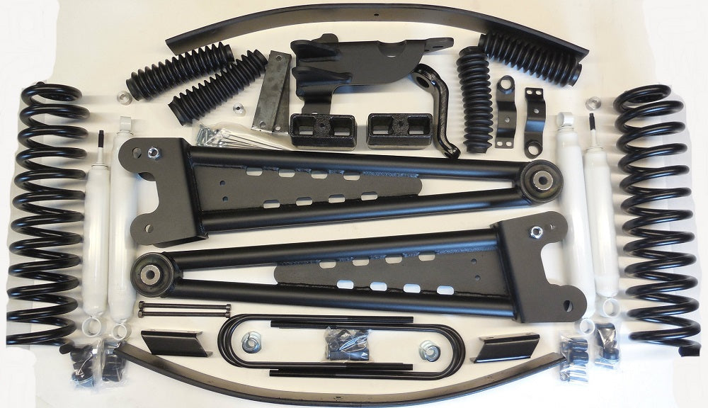 If you're looking for a complete lift to give your truck a more aggressive look or fit larger wheels and tires, you've come to the right place! RevTek Suspension's complete lift kits are an installer friendly solution that is affordable, reliable, and safe to use. Proudly made in the USA, this RevTek Suspension complete lift kit achieves lift for the front of your truck with a new set of 6" lift springs. Longer radius arms are included to relocate the axle forward for improved tire clearance , as well as an adjustable track bar and bracket, which eliminates the OEM tie rod style. The rear of the truck is lifted with an add-a-leaf, lift blocks and longer u-bolts. Your RevTek Suspension complete lift kit will come with everything you need for a quick and easy installation. RevTek Performance Shocks are included! All necessary hardware, as well as detailed instructions that include photos are included. The part number for this RevTek complete lift kit is 6971 and it fits 2017-2018 Ford F-250 F-350 SuperDuty 4WD models. It lifts the front of your truck 6", and the rear of your truck 4".