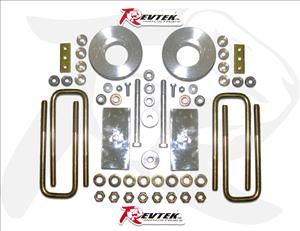 If you're looking for a nice COMPLETE lift to give you a little extra height, you've come to the right place! RevTek leveling kits are an easy solution that easy to install, safe to use, and best of all, they maintain factory ride quality. This RevTek Suspension COMPLETE leveling kit achieves lift for the front of your truck with a set of coil spring spacers (you will have to compress your factory springs to install these!). This will add 2 1/2" of front lift to the truck. The rear is lifted 1 1/4" with new rear lift blocks and longer u-bolts. Carrier bearing and differential drop spacers are included in the kit to ensure proper ride quality. Your RevTek Suspension front leveling / lift kit will come with everything you need. All necessary hardware, as well as detailed instructions that include photos. The part number for this RevTek Suspension front lift kit is RevTek 438 and it fits 2007-2017 Toyota Tundra 2WD. It lifts the front of your truck up 2.5" and the rear 1.25", giving your truck a more level stance and allowing you to safely run up to a 32" wheel .