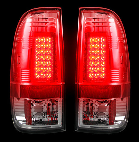 RECON LED Tail Lights: RECON is known among truck enthusiasts as being the manufacturer of some of the most popular and desirable LED Tail Lights available. RECON LED Tail Lights are made to exacting standards that exceed the O.E.M Tail Lights installed from the factory. RECON LED Tail Lights are available in their 4 popular syles: RECON Smoke, RECON Clear, RECON Red, & and RECON Red/Smoke. RECON shows a commitment to quality that is evident in the fit & finish of RECON LED Tail Lights. We encourage you to "Get Lit" & set your truck apart from the crowd with our RECON LED Tail Lights today. When you buy RECON LED Tail Lights you're getting a product that looks good and is built to last. Sold as a Pair. The part number for this item is: 264172CL and they are for the following application: 1997-2003 Ford F150 Styleside AND 1999-2007 Ford Super Duty F250HD/350/450/550 Clear Recon LED Tail Lights