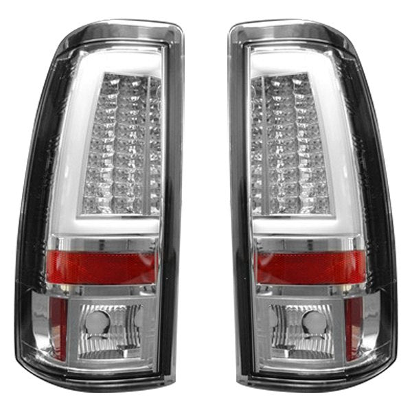 RECON LED Tail Lights: RECON is known among truck enthusiasts as being the manufacturer of some of the most popular and desirable LED Tail Lights available. RECON LED Tail Lights are made to exacting standards that exceed the O.E.M Tail Lights installed from the factory. RECON LED Tail Lights are available in their 4 popular syles: RECON Smoke, RECON Clear, RECON Red, & and RECON Red/Smoke. RECON shows a commitment to quality that is evident in the fit & finish of RECON LED Tail Lights. We encourage you to "Get Lit" & set your truck apart from the crowd with our RECON LED Tail Lights today. When you buy RECON LED Tail Lights you're getting a product that looks good and is built to last. Sold as a Pair. The part number for this item is: 264373CL and they are for the following application: 1999-2006 Chevy Silverado / GMC Sierra.