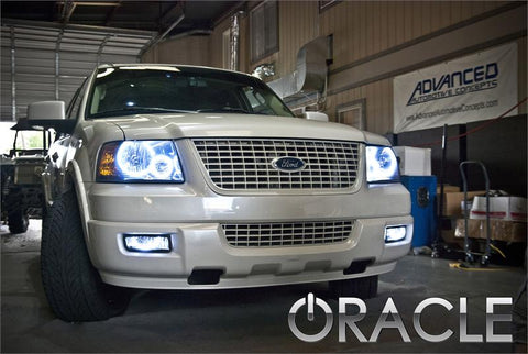Oracle Halo Head Light Assemblies are the perfect solution for your vehicle. Oracle takes a set of brand new Depo OEM Style Head Lights and installs a set of halo lights in them. You'll enjoy the great looks of halo lights while avoiding most of the extremely tedious installation process. In many cases buying these entire assemblies works out to be less than what a shop would charge to install halo rings into your existing lights and buy the rings! The part number for this item is 7153-001 and this PAIR of new Head lights fits 2003-2006 Ford Expedition models. LED White 7153-001 LED Blue 7153-002 LED Red 7153-003 LED Green 7153-004 LED Amber 7153-005 ColorShift w/ 2.0 Remote 7153-333
