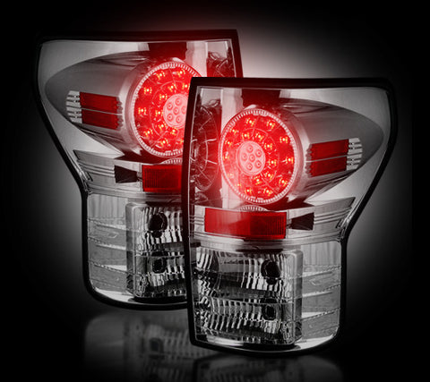 RECON LED Tail Lights: RECON is known among truck enthusiasts as being the manufacturer of some of the most popular and desirable LED Tail Lights available. RECON LED Tail Lights are made to exacting standards that exceed the O.E.M Tail Lights installed from the factory. RECON LED Tail Lights are available in their 4 popular syles: RECON Smoke, RECON Clear, RECON Red, & and RECON Red/Smoke. RECON shows a commitment to quality that is evident in the fit & finish of RECON LED Tail Lights. We encourage you to "Get Lit" & set your truck apart from the crowd with our RECON LED Tail Lights today. When you buy RECON LED Tail Lights you're getting a product that looks good and is built to last. Sold as a Pair. The part number for this item is: 264188CL and they are for the following application: 2007-2013 Toyota Tundra