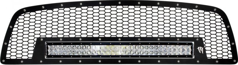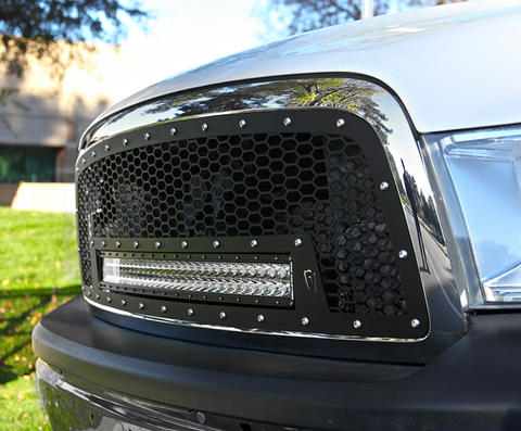 This Rigid Industries replacement grille is designed specifically for the 2013-2014 Dodge Ram 1500 and allows for a clean, OE-quality install of a Rigid Industries high output LED Light bar. This grille accepts one (1) 30" RDS-Series Curved LED light bar (included). This 2-piece grille is made from laser-cut 304 stainless steel and is assembled using stainless steel button socket head bolts and nyloc nuts - no welds. It features a high quality black powder-coat finish. Installation requires modification to your OEM grille shell. Professional installation is recommended. The part number for this item is Rigid Industries 41593 and it fits 2009-2012 Dodge Ram 1500 models