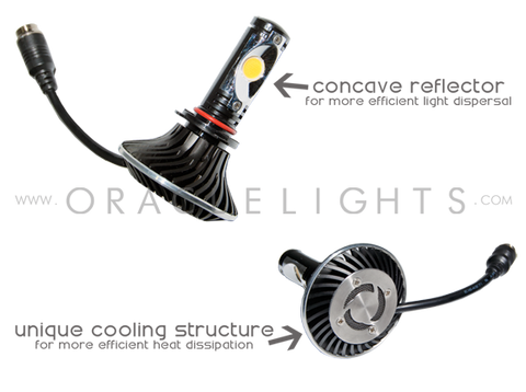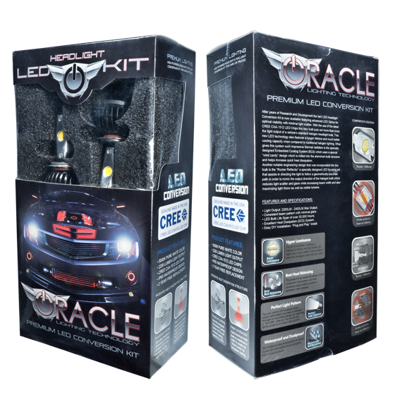 Oracle LED Headlight Bulbs are a great addition to your vehicle. Not only do they outperform standard halogen bulbs, they last longer, use a fraction of the power, and emit a cleaner brighter light. The unique construction of Oracle LED Headlight bulbs allows for efficient heat dissipation. Each bulb will be cool to the touch even after hours of continuous use, unlike HID bulbs which can reach melting temperatures after long periods of operation. At 2200 lumens per bulb and a 40,000 hour lifetime the CREE LEDs are sure to live up to your demands. These are not some cheap no name LED! Each bulb is outfitted with a concave reflector allowing for a more fluid light pattern, superior light visibility, and anti-glare against oncoming traffic. The part number for this PAIR of Oracle LED Headlight Bulbs is 5228-001 and they replace factory H10 / 9145 bulbs. Everything you need for the LED Retrofit is included.