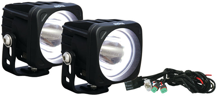 The Vision X 3.25 square XIL-OPH115KIT off road light features 10 Watt LED technology, a spot beam pattern that offers you great distance with little spread to the beam, and black powder coated die-cast aluminum housing. The XIL-OPH115KIT comes standard with an Extended warranty, and multi-volt 9-32V DC input. This light weighs 1.25 pounds and offers a mounting depth of 2. It offers proprietary IRIS reflector technology and LED halo ring for day time driving light.