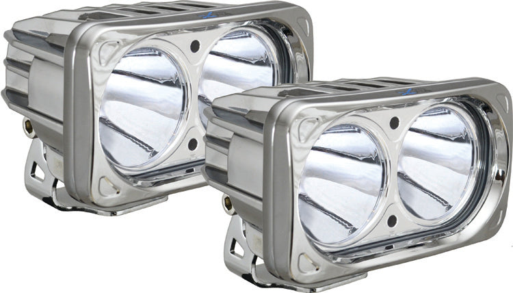 The Vision X 6 square XIL-OP210CKIT off road light features 10 Watt LED technology, a spot beam pattern that offers you great distance with little spread to the beam, and chrome die-cast aluminum housing. The XIL-OP210CKIT comes standard with an Extended warranty, and multi-volt 9-32V DC input. This light weighs 2.25 pounds and offers a mounting depth of 2. It offers proprietary IRIS reflector technology and Prime Drive for enhanced reliability and output.
