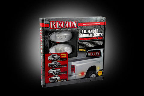 Recon LED Fender Lights are a direct replacement for the factory installed amber & red lenses that come as standard equipment on all dually trucks; however they also can be installed and look great on all other types of trucks and SUVs with some simple drilling and wiring. The part number for this item is 264133CL and it fits 1999-2011 Chevy Silverado/GMC Sierra models.