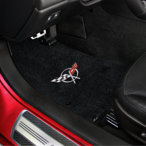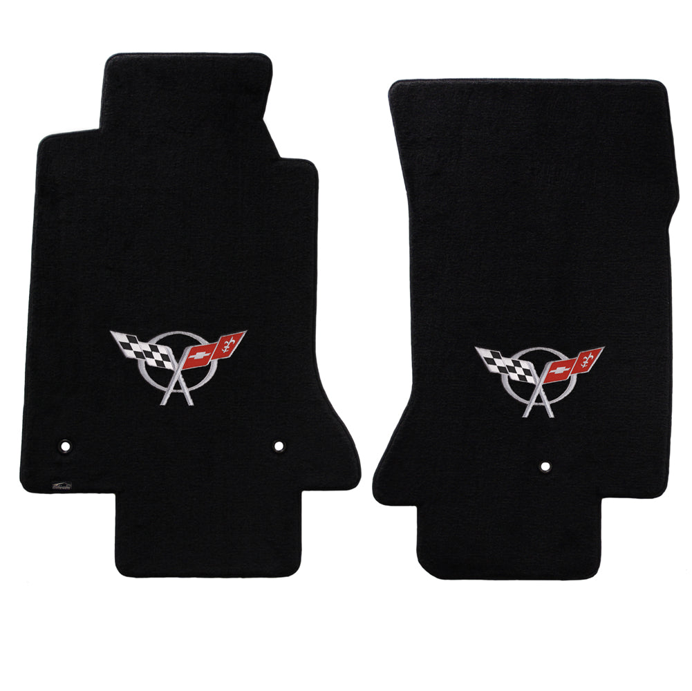 1997-2004 Chevy Corvette "C5 Logo" Velourtex FRONT Seat Floor Mats (Black) by Lloyd Mats