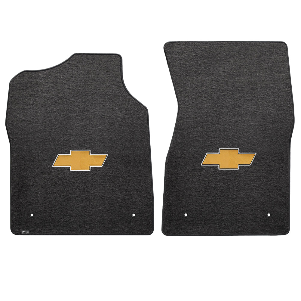 1999-2006 Chevy Silverado (Standard Cab) "Bow Tie Logo" Velourtex FRONT Seat Floor Mats (Ebony) by Lloyd Mats