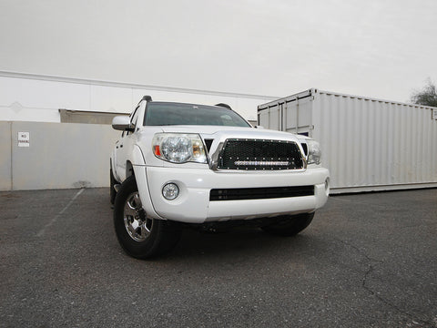 This Rigid Industries LED grille is designed specifically for the 2005-2010 Toyota Tacoma and allows for a clean, OE-quality install of Rigid Industries high output lighting. This grille accepts one (1) 20" SR-Series LED light bar (not included). This 2-piece grille is made from laser-cut 304 stainless steel and is assembled using stainless steel button socket head bolts and nyloc nuts - no welds. It features a high quality black powder-coat finish. Installation requires modification to your OEM grille shell. Professional installation is recommended. The part number for this item is Rigid Industries 40575 and it fits 2005-2010 Toyota Tacoma trucks. It does NOT fit the 2011.