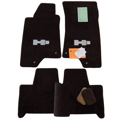 Custom cut for an exact fit and more durable than the factory mats, Lloyd Hummer H3 Mats are just what your Hummer H3 needs to give it a little style and protect your floor at the same time. Lloyd Hummer H3 Floor Mats feature a traction back slip resistant rubber backing that along with the built in factory style mount tabs will keep your Lloyd mats from moving out of place. Lloyd Hummer H3 Floor Mats also come with a special latex coating that protects them from rain, mud and snow. Each Lloyd Hummer H3 floor mat has a 5/16" pile height and a polypropylene mesh to assure stiffness and keep them looking new for years. Lloyd Hummer H3 Mats are a perfect match to the color of your Hummer H3 interior. They feature the Hummer H3 logo (licensed by GM) and are available in 2 styles: Hummer H3 (single logo), or Plain (no logo). These Lloyd Mats fit all Hummer H3 models from 2006-2010. Price is for Front and back seat mats.