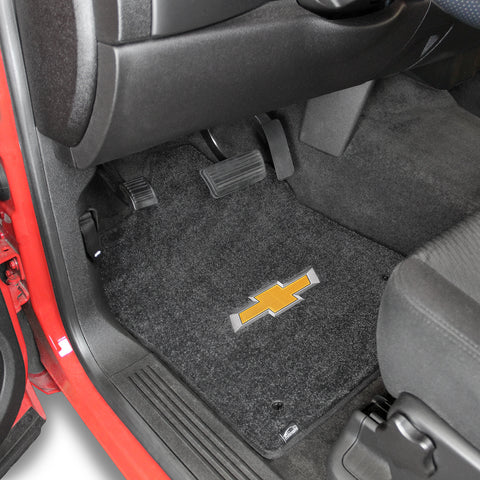 2007-2013 Chevy Silverado (Standard Cab) "Bow Tie Logo" Ultimats FRONT Seat Floor Mats (Ebony) by Lloyd Mats