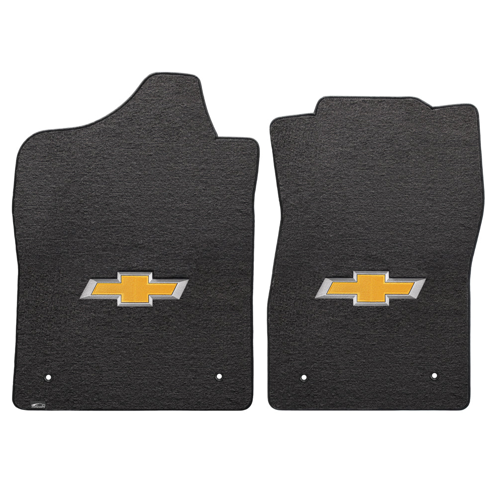 2007-2013 Chevy Silverado (Standard Cab) "Bow Tie Logo" Velourtex FRONT Seat Floor Mats (Ebony) by Lloyd Mats