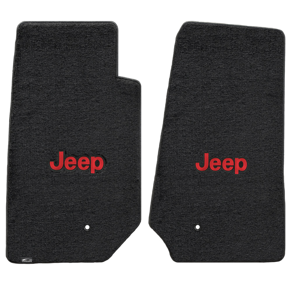 2007-2013 Jeep Wrangler Unlimited "Red JEEP Logo" Velourtex FRONT Seat Floor Mats (Black) by Lloyd Mats