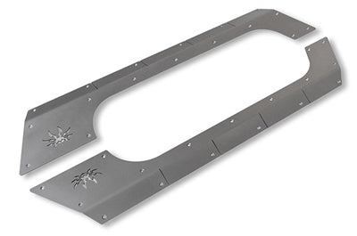 Poison Spyder JK Body Armor is recommended equipment for any JK venturing into off road situations where body damage is eminent. JK Body Armor protects the thin factory sheetmetal with rugged, precision-fit 3/16" aluminum. Used by itself, JK Body Armor hugs the Jeep's body contours to provide protection with no loss of ground clearance. Used with the factory Rubicon rocker rails, the JK Body Armor helps prevent trail damage that can be caused by rocks pushing the factory rocker rails up into the body. Aluminum is recommended where Rocker Knockers, the stock Rubicon rocker rails or other rocker panel protection will also be used. The aluminum pieces are much lighter weight (27 lbs. lighter for the 4-door versions), yet still provide excellent load distribution characteristics when used as a secondary barrier in conjunction with external rocker rails. Both steel and aluminum versions may be painted or powdercoated prior to installation, but only the aluminum ones may be installed raw without any protective coating. They may also be polished or clear-coated at the installer's discretion. Both steel and aluminum parts are CNC-laser cut and precision brake-formed for a precise fit to the unique contours of the JK body. Bolt holes are countersunk, and stainless steel flat head cap screws are supplied for a clean, flush-surface installation. Drilling of the body is required for installation. Used with Poison Spyder's JK Rocker Knockers, the JK Body Armor provides one more line of defense for your JK, in the most complete, strongest, best looking package of rocker panel protection gear available for the JK. JK Body Armor is manufactured from either 3/16" high pressure steel plate or 3/16" 6061-T6 aluminum plate. Steel is preferred where the JK Body Armor will be installed by itself, without Rocker Knockers™ or other rocker panel protection. Aluminum is recommended where Rocker Knockers, the stock Rubicon rocker rails or other rocker panel protection will also be used. The aluminum pieces are much lighter weight (27 lbs. lighter for the 4-door versions), yet still provide excellent load distribution characteristics when used as a secondary barrier in conjunction with external rocker rails. Both steel and aluminum versions may be painted or powdercoated prior to installation, but only the aluminum ones may be installed raw without any protective coating. They may also be polished or clear-coated at the installer's discretion. Both steel and aluminum parts are CNC-laser cut and precision brake-formed for a precise fit to the unique contours of the JK body. Bolt holes are countersunk, and stainless steel flat head cap screws are supplied for a clean, flush-surface installation. Drilling of the body is required for installation. JK Body Armor is shipped in bare, unfinished metal. You will need to paint or powder coat prior to final installation. The part number for this item is Poison Spyder 18-08-410-ALUM and it fits 2007-2016 Jeep Wrangler (2 Door Models).