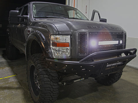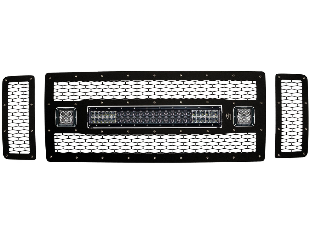 This Rigid Industries replacement grille is designed specifically for the 2008-2010 Ford F-250 / F-350 Super Duty NON FX-4 and allows for a clean, OE-quality install of a Rigid Industries high output LED Light bar. This grille accepts one (1) 20" E-Series LED light bar (not included). and (2) D- Series LED Lights (not included) This multi piece grille is made from laser-cut 304 stainless steel and is assembled using stainless steel button socket head bolts and nyloc nuts - no welds. It features a high quality black powder-coat finish. Installation requires modification to your OEM grille shell. Professional installation is recommended. The part number for this item is Rigid Industries 40577 and it fits 2008-2010 Ford F250 F350 SuperDuty (does NOT fit the FX-4) models.