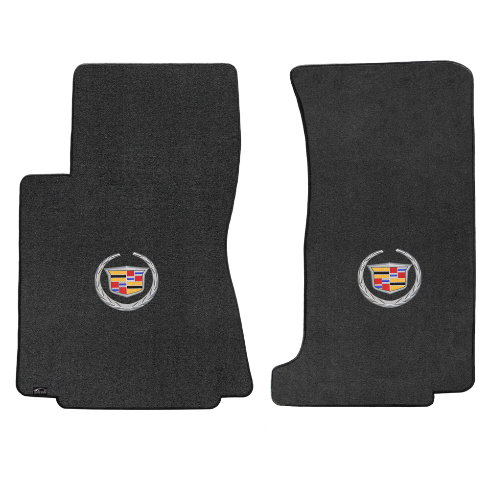2008-2013 Cadillac CTS (AWD Sedan and Wagon) "Cadillac Logo" Velourtex FRONT Seat Floor Mats (Ebony) by Lloyd Mats