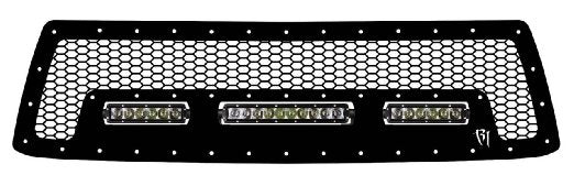 LED Light is NOT included! This Rigid Industries lower LED grille is designed specifically for the 2010-2013 Toyota Tundra and allows for a clean, OE-quality install of Rigid Industries high output lighting. This grille accepts one (1) SR-Series 10" LED light bar and two (2) SR-Series 6" light bars (not included). This 2-piece grille is made from laser-cut 304 stainless steel and is assembled using stainless steel button socket head bolts and nyloc nuts - no welds. It features a high quality black powder-coat finish. Installation requires modification to your OEM grille shell. Professional installation recommended. The part number for this item is Rigid Industries 40555 and it fits 2010-2013 Toyota Tundra trucks