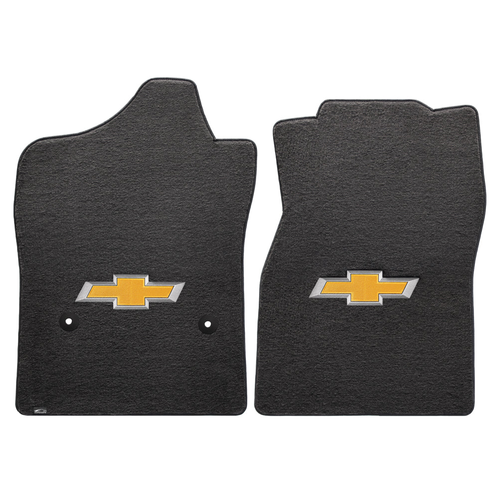2014-2015 Chevy Silverado (1500 Standard Cab) "Bow Tie Logo" Velourtex FRONT Seat Floor Mats (Ebony) by Lloyd Mats