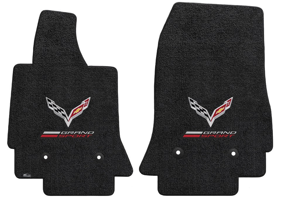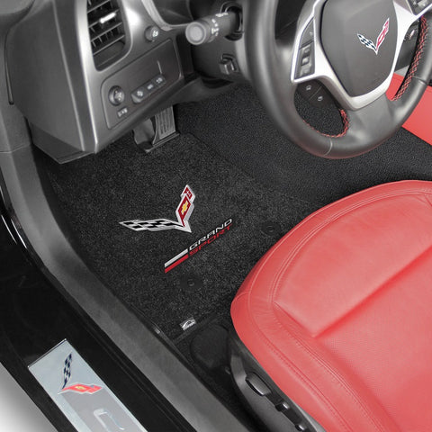 2014-2017 Chevy Corvette "Flags + Grand Sport Logo" Ultimate FRONT Seat Floor Mats (Jet Black) by Lloyd Mats