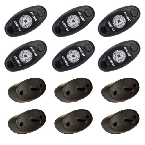 The A Series PRO LED Rock Light Kit by Rigid Industries is the perfect solution for rock crawlers, Jeeps, Off-Road Vehicles, and trail and dune riders. Each Rock light kit includes extremely versatile, measuring 3 wide by 1.625 tall and 0.5 thick LED Lights. Custom downward angled rubber pads are included for easy and consistent downward angled installation installation Each A-Series High Powered LED Light in the kit encases 3 LEDs with an output of 400 raw lumens. They only draw 0.3 amps and 4 watts. Each LED Light has an extra long 15 lead making wiring a breeze. A distribution block and wiring harness complete the kit. The part number for this item is Rigid Industries 400283