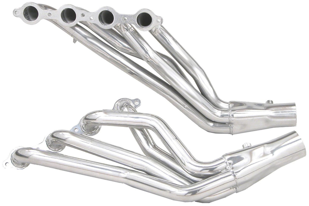 Pacesetter Headers are the perfect solution for your vehicle. Whether you simply need to replace a cracked/rusted exhaust manifold, getting your truck race ready, or you’re just looking for extra horsepower and torque, Pacesetter Headers will get your vehicle breathing better! Pacesetter Headers are manufactured in the USA using mandrel-bent, mild steel tubing and surface-ground, thick steel flanges to resist warping and increase lifespan. Pacesetter Armor Coated headers are the same performance headers you've come to expect from Pacesetter, but with one big difference. The Pacesetter Armor Coat is a polished metallic / ceramic finish that reduces underhood temperatures, resists rust and corrosion, and looks great. Armor Coat Headers by Pacesetter are guaranteed to not chip, peel or flake for three years. Each Armor Coated header undergoes an extensive preparation phase followed by two applications of the Pacesetter Armor coating and a high-temp curing process. This results in a 2000 degree continuous heat rating that is perfect for racing and high performance applications.