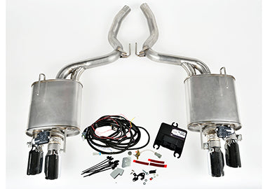 The Roush Performance ACTIVE Axle Back Exhaust is a lot more than just an exhaust system. Sure, this system features the famous Roush Stainless Steel Exhaust system that you've seen in the past, but this system goes a step further. What is an ACTIVE exhaust system? The Roush Active Performance Exhaust System allows you to take an active role in controlling your exhaust system flow, sound, and performance. With simply on the fly tuning via an in car dial, you can choose between four different exhaust styles in seconds. Touring Mode: This is the quietest setting and keeps the exhaust valve closed for times when you want things as quiet as possible. Sport Mode: This setting changes based upon your RPMs and how far you have your foot on the gas. Sport Mode keeps the exhaust quiet during normal driving conditions, but the harder you start pushing the vehicle, the more the valve opens up and the exhaust system wakes up. This is the most popular setting for every day driving. Track Mode: This is the most aggressive setting. The exhaust valve is fully open at all times. This is the highest performance, as well as the loudest setting. Sound levels may exceed local sound ordinances when at high RPMs, so we only recommend using this setting at the track racing. Custom Mode:. You can create a custom sound map by tapping into the heart of the exhaust system management unit via the exhaust's integrated wifi connectivity and iphone application. You'll have full control of the valve positions based on speed, RPMs, and accelerator position. Roush Exhausts are made from stainless steel and are finished with a chrome flashing process. The exhaust tips are embossed with the Roush logo. Roush Exhausts are completely bolt on and can be installed with minimal effort. All necessary hardware and instructions are included. The part number for this item is Roush 421928 and it fits 2015-2017 Ford Mustang (2.3 EcoBoost Trim levels 200A/201A) with a Roush Rear Valance. If you have not upgraded to a Roush Rear Valance, this exhaust will not fit.