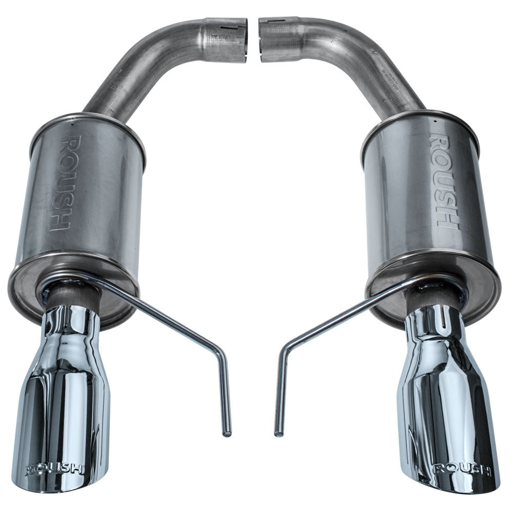 The Roush Performance Axle Back Exhaust is the perfect upgrade for your Mustang. Featuring an open-chambered designed muffler, this Roush Exhaust features an aggressive sound that is unique to Roush without the boom/drone found on many other aftermarket exhaust systems at cruising speeds. Roush Exhausts are made from stainless steel and are finished with a chrome flashing process. The exhaust tips are embossed with the Roush logo.