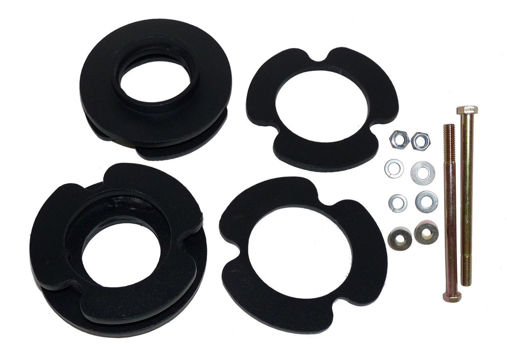 If you're looking for a mild lift to level out the front of your truck, you've come to the right place! Traxda leveling kits are an easy solution that easy to install, safe to use, and best of all, they maintain factory ride quality. Proudly made in the USA, this Traxda front leveling kit achieves lift for your truck with a strut extender/spacer. This simple solution means you won't have to compress your springs, and you can probably to the installation yourself in your own garage. Your Traxda front leveling / lift kit will come with everything you need for a quick and easy installation. Strut disassembly is NOT required! All necessary hardware, as well as detailed instructions that include photos, alignment specs, and a Lifetime Warranty are included. The part number for this Traxda front lift kit is 909015 and it fits 2000-2006 Toyota Tundra Double Cab PreRunner (6 Lug) models. It lifts the front of your truck 3", giving your truck a level stance and allowing you to safely run up to a 33" wheel .