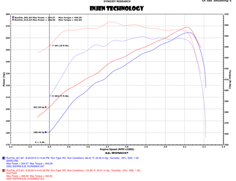 Injen Evolution Air Intake Systems for Diesel Trucks: Injen Evolution Air Intake Systems for Diesel Trucks are Injen's newest product, featuring supernano web DRY filters and massive horsepower and torque gains. The enclosed airbox design offers a clean look and superior heat protection compared to traditional open element systems. Injen Evolution Air Intake System will replace your factory airbox and intake tube. Your existing sensors and hoses will connect to it to ensure a proper fit with no check engine lights. Injen also has taken the guess work out of when it is time to clean your filter with the incorporation of a filter minder gauge. Thanks to the supernano web dry design of the filter, there is no oil to mess with which can cause issues with sensors. With all of these features and the horsepower and torque gains, the choice is simple. The part number for this item is EVO7000 and it fits 2001-Mid 2004 Chevy Silverado GMC Sierra 2500 3500 (6.6 LB7 Duramax Diesel Models). Injen achieved gains of 21hp and 46lbs of torque during their testing!