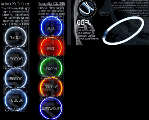 CCFL Halo Kits by Oracle Lighting are a great way to add a custom touch of class to your vehicle. Installing Halo Lights inside your headlights will instantly change the entire appearance of your vehicle, especially at night. Oracle CCFL Halo Kits use a Cold Cathode Fluorescent Lighting for bright and even-lit ring illumination. CCFL is a Phosphor coated Glass tube (similar to neon) that is powered via a separate inverter and connected to the ring by a PNP connector. An advantage of CCFL is the smooth, consistent, and even illumination but the glass tubes do need to be handled with care during installation. The halo rings will need to be epoxied into your headlight, (once you complete the much more difficult process of opening your headlight assembly). Epoxy is not included, but can be purchased at any hardware store. Oracle Halo rings can be wired to a switch for manual control or wired to your parking lights for automatic operation. Approx. 50,000 hour lifetime. Professional installation is recommended. If planning to install these yourself, please watch the install video to make sure you are comfortable with the process of baking and opening your headlight before purchasing. This Halo Light Kit fits 2003-2005 Lincoln Aviator models and comes with the halo rings to install inside of both headlights. Foglight halos are not included and are sold separately. 2416-030 2416-032 2416-033 2416-038