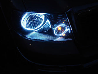 SMD LED Halo Rings by Oracle Lighting are taking the automotive aftermarket by storm. Installing an Oracle LED Halo Light Kit on your vehicle will instantly change the entire appearance of your vehicle, especially at night. Oracle Halo Kits are of top quality and no Inverter is required. Connect directly to 12V Source, such as your parking lights, for automatic operation or wire them to a switch for manual control. Oracle LED Halo Light Kits use a rigid PCB lined with top quality leds. LED Halo Kits shine directionally forward and are not prone to the same breakage risks older style glass halo rings are susceptible to. You'll notice as soon as you receive your rings that there are no gaps in between the LEDs unlike some of the generic knock offs popping up in the marketplace. Oracle LED Halo Rings have an industrial grade self adhesive backing that will hold them in place with ease. Oracle is so confident in the performance of these halo kits that they come with a Lifetime Warranty. This LED Halo Light Kit fits 2004-2008 Ford F150 models and comes with the halo rings for both headlights. Professional installation is strongly recommended. Please have your mechanic quote you a price prior to purchasing these lights, as many mechanics do not have an oven in their facility and will not be able to do the job. If planning to install these yourself, please watch the install video to make sure you are comfortable with the process of baking your existing headlight to melt the adhesive holding it together and then prying it open before purchasing. White 2303-001 Blue 2303-002 Red 2303-003 Green 2303-004 Amber 2303-005