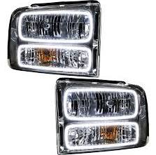 Oracle Halo Head Light Assemblies are the perfect solution for your vehicle. Oracle takes a set of brand new Depo OEM Style Head Lights and installs a set of halo lights in them. You'll enjoy the great looks of halo lights while avoiding most of the extremely tedious installation process. In many cases buying these entire assemblies works out to be less than what a shop would charge to install halo rings into your existing lights and buy the rings! The part number for this item is 7160-001 and this PAIR of new Head lights fits 2005-2007 Ford F250. LED White 7160-001 "LED Blue 7160-002 LED Red 7160-003 ColorShift w/ 2.0 Remote 7160-333