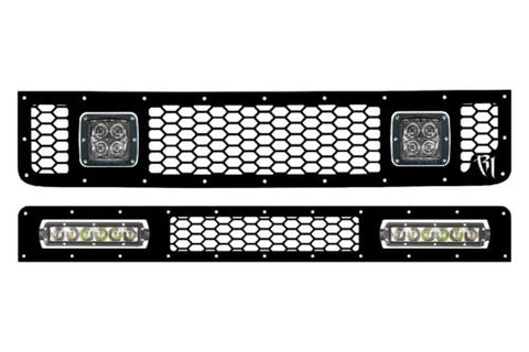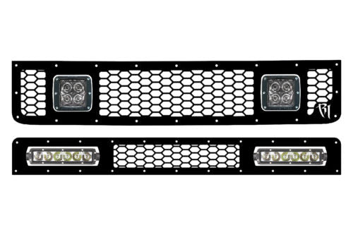 This Rigid Industries Complete LED Grille Kit is designed specifically for the 2005-2013 Toyota FJ Cruiser and allows for a clean, OE-quality install of Rigid Industries' high output lighting (not included). It includes replacements for both upper and lower grilles. The upper grille accepts two (2) D-Series LED lights and the lower grille accepts two (2) SR-Series 6" LED light bars. These 2 piece grilles are made from laser-cut 304 stainless steel and are assembled using stainless steel button socket head bolts and nyloc nuts - no welds. They both feature a high quality black powder coat finish. Installation requires modification to your OEM grille shell. We recommend professional installation. The part number for this item is Rigid Industries 40551 and it fits 2005-2013 Toyota FJ Cruiser