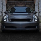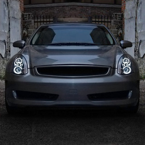 CCFL Halo Kits by Oracle Lighting are a great way to add a custom touch of class to your vehicle. Installing Halo Lights inside your headlights will instantly change the entire appearance of your vehicle, especially at night. Oracle CCFL Halo Kits use a Cold Cathode Fluorescent Lighting for bright and even-lit ring illumination. CCFL is a Phosphor coated Glass tube (similar to neon) that is powered via a separate inverter and connected to the ring by a PNP connector. An advantage of CCFL is the smooth, consistent, and even illumination but the glass tubes do need to be handled with care during installation. The halo rings will need to be epoxied into your headlight, (once you complete the much more difficult process of opening your headlight assembly). Epoxy is not included, but can be purchased at any hardware store. Oracle Halo rings can be wired to a switch for manual control or wired to your parking lights for automatic operation. Approx. 50,000 hour lifetime. Professional installation is recommended. If planning to install these yourself, please watch the install video to make sure you are comfortable with the process of baking and opening your headlight before purchasing. This Halo Light Kit fits 2006-2007 Infiniti G35 Coupe models and comes with the halo rings to install inside of both headlights. Foglight halos are not included and are sold separately. 2321-030 2321-031 2321-032 2321-033 2321-038